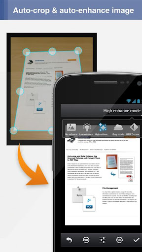 CamScanner turns Phone in., able any paper documents shooting. Simply take a picture paper documents such, whiteboards, notes, agreement forth, -crop image, enhance image quality create standard PDF file. Then easily upload documents to cloud like Dropbox, Google Doc, Box.net, or searching.