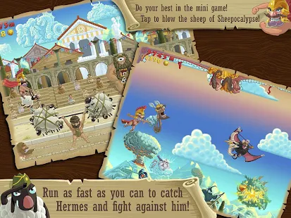 ! Sheep Happens chaotic endless runner where maneuver around other runners, obstacles, falling from chase down Hermes. Collect coins shop fashionable hats. Challenge friends run.=FEATURES=